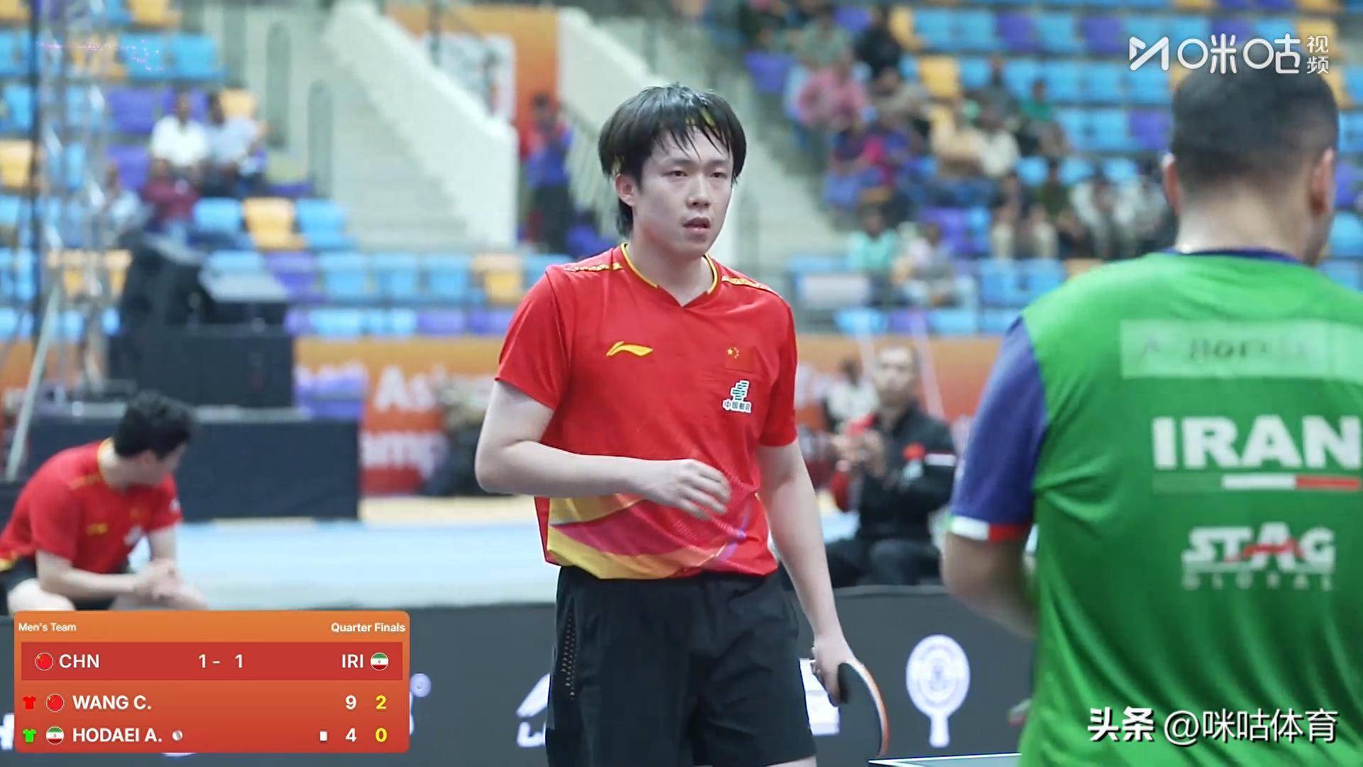 前两盘比赛,林诗栋负于法拉吉,梁靖崑征服阿拉米扬,两边总比分1-1平。要津的第三盘,中国队第三单打王楚钦登场,对阵伊朗队的霍戴伊。